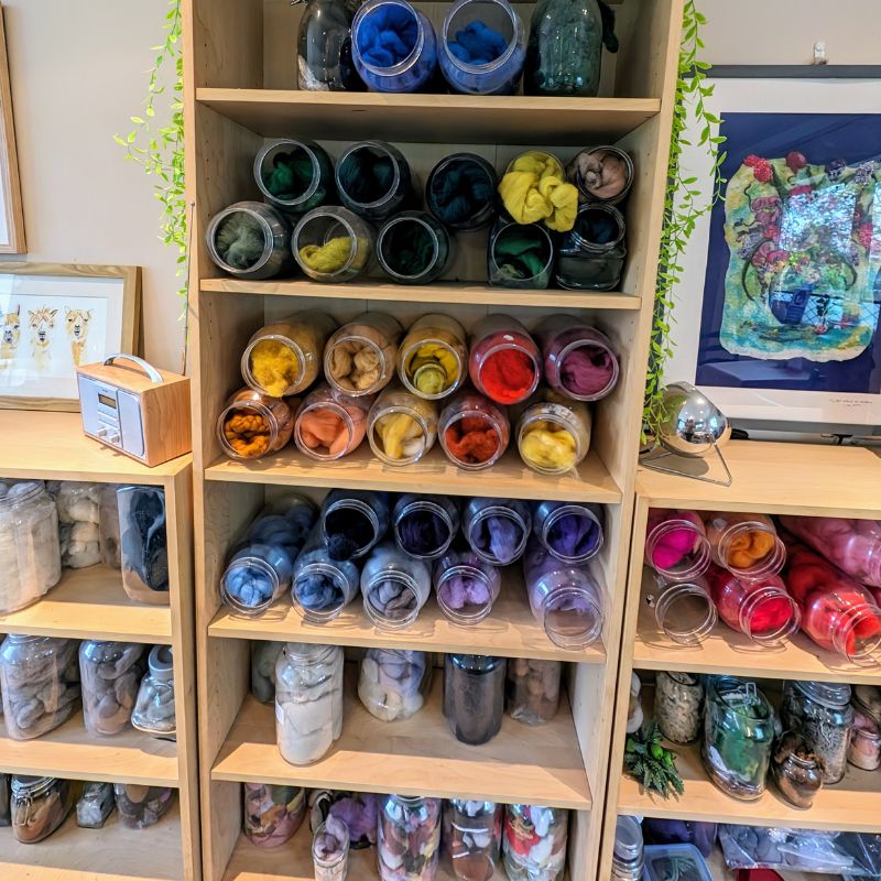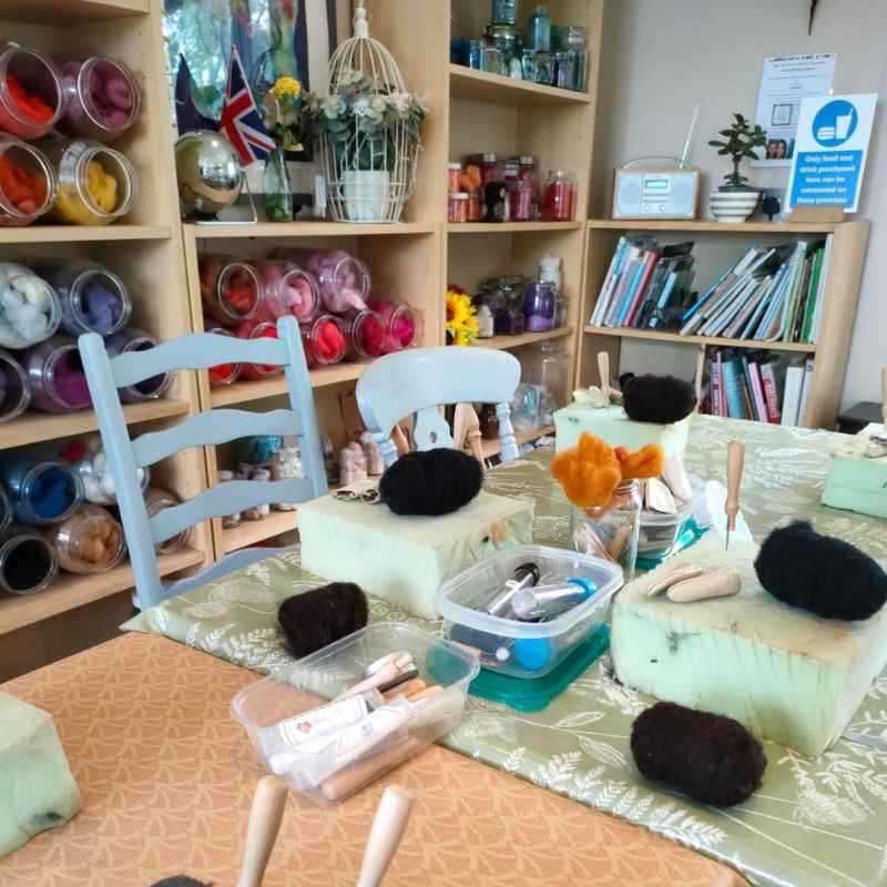 All set for a needle felting workshop. If you fancy trying needle felting give Sam a call to arrange your session.