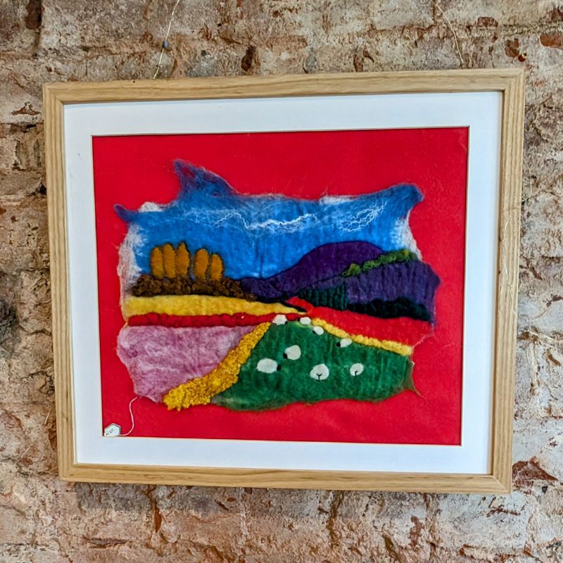 An example of a needle felted picture created by a local artist. All artwork is for sale. POA